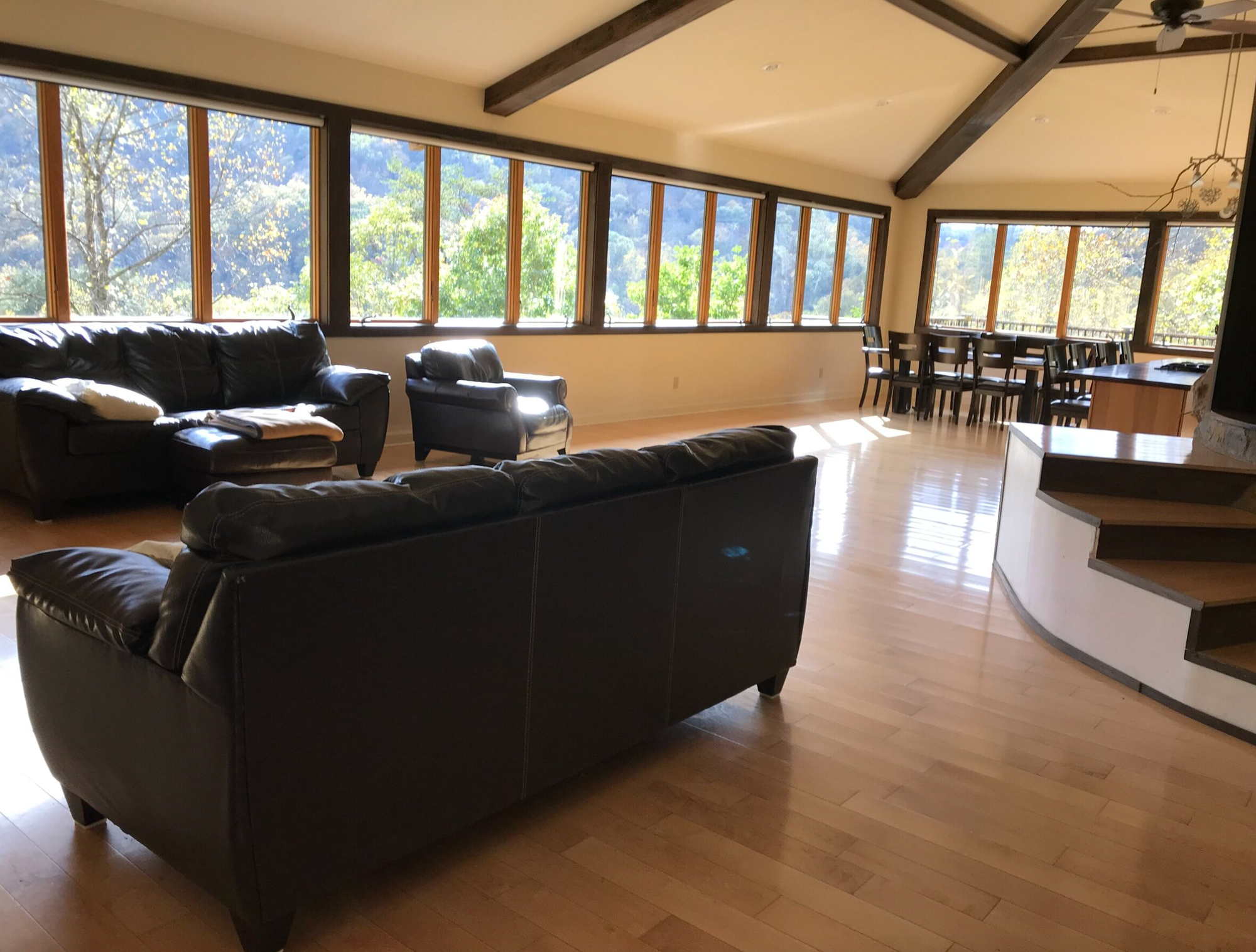 This is a gorgeous location - a huge house with an open space for our play time, two kitchens, multiple bathrooms, and plenty of sleeping spaces. There is a hot tub, outdoor shower and eating areas. The house is nestled in a forested "holler" and the "yard" has plenty of trees and nature space for grounding and soothing. There's also room for camping out back.
