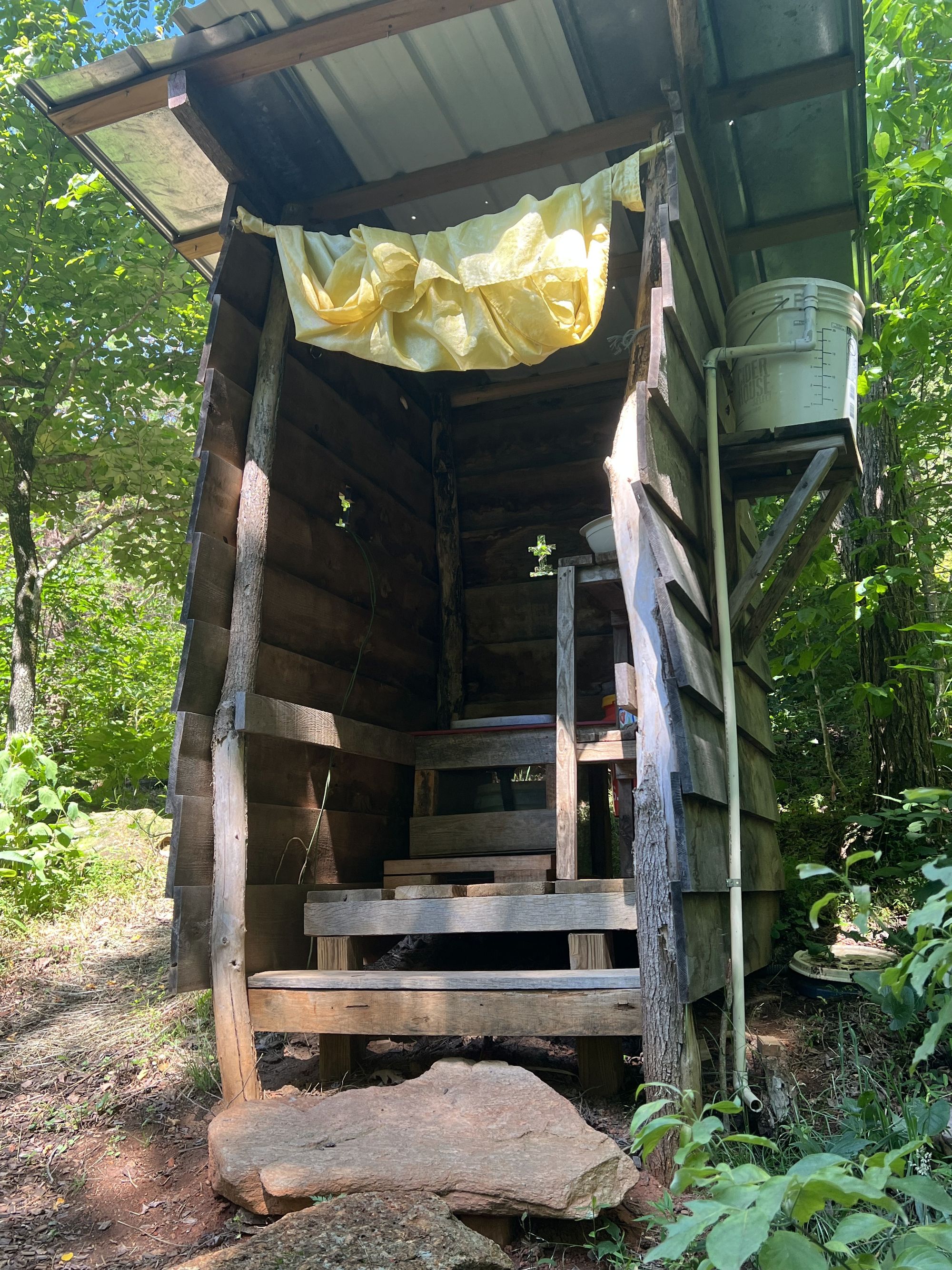 Unfortunately, Dancing Shiva is not a venue that is accessible for people with some mobility challenges. There are steep hills and stairs. There are no flush toilets, only composting toilets - and they are wonderfully maintained and very pleasant to use.